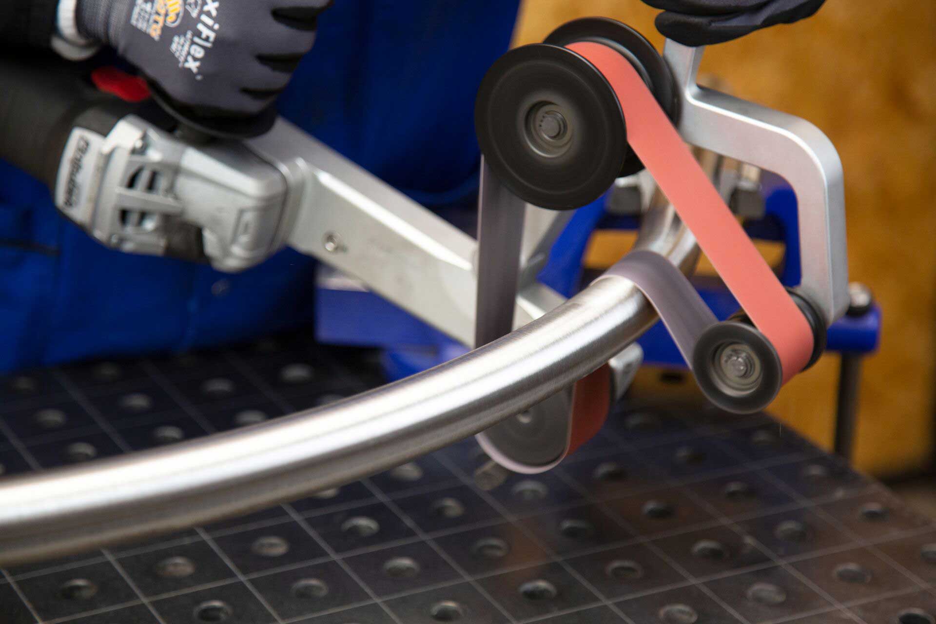 The real world is always one of compromise. Sanding a contoured surface you will need to select a more flexible belt. Sadly this will come at the expense of aggression but it will allow for more consistent sanding. In this type of scenario products such as our FF87 belt materials are excellent. The ‘F’ denotes the flexible backing and as it can be supplied with a 60 grit abrasive grain it can give a high cut rate.